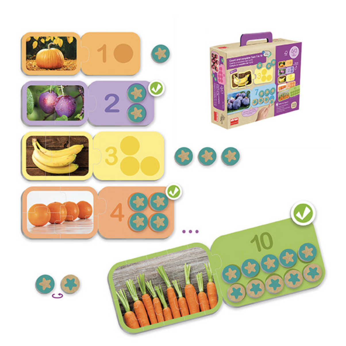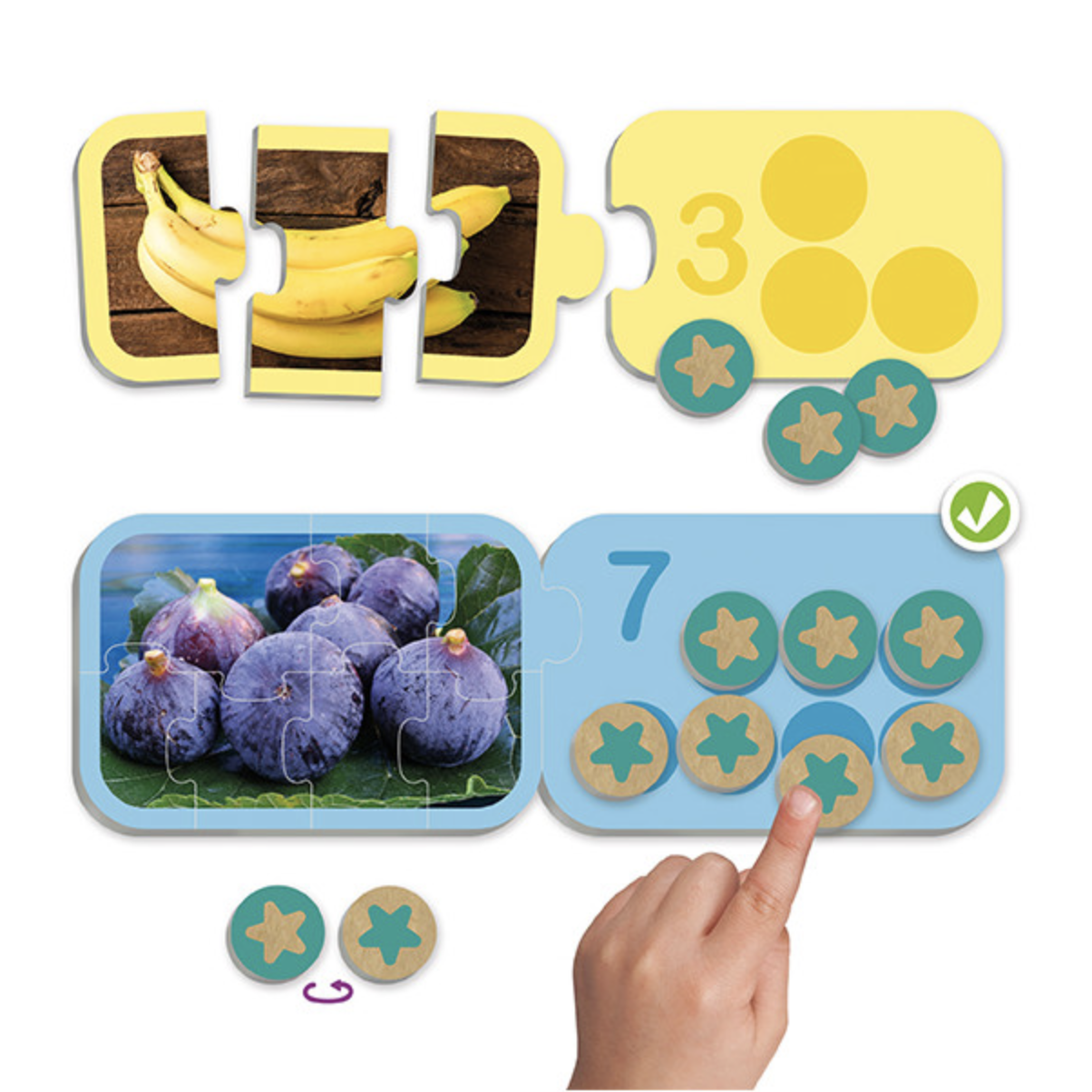 – 10 puzzle-uri cu imagini reale de alimente sănătoase cu număr diferit de piese (în funcție de numărul pe care îl reprezintă)