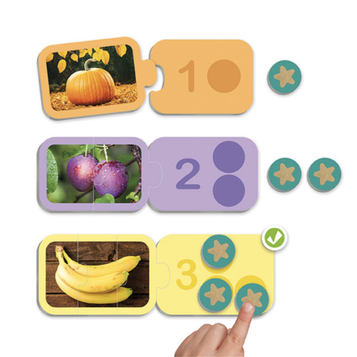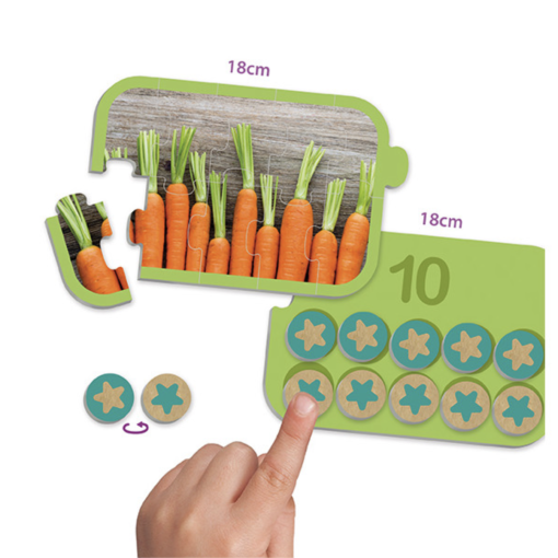 – 10 puzzle-uri cu imagini reale de alimente sănătoase cu număr diferit de piese (în funcție de numărul pe care îl reprezintă)